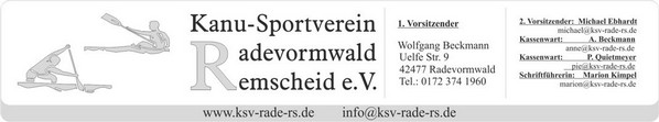 An alle Mitglieder:innen des Kanu-Sportvereins Radevormwald Remscheid e.V.